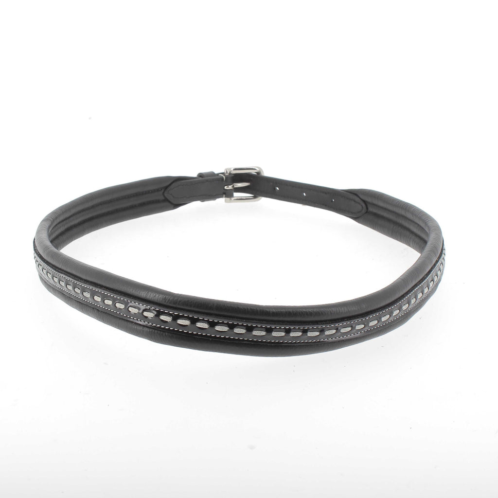Leather belt with off-white "Point Sellier" stitches design. "Point Sellier" stitches are sewn on a patent leather piece, and set on a cushy leather lining. Nickel plated brass buckles.