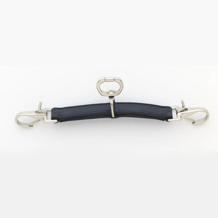 Imported padded leather lunge attachment features 2 easy clips for attachment to a bit, and a swivel roller buckle middle.