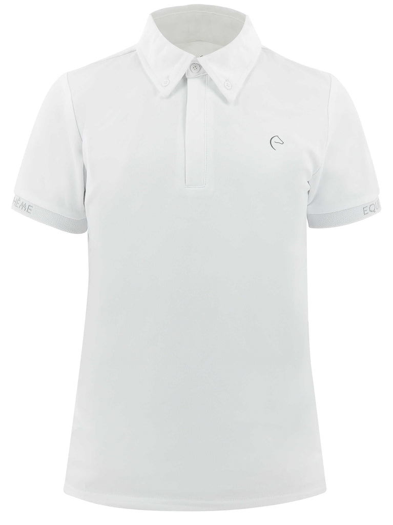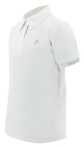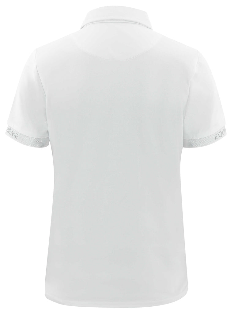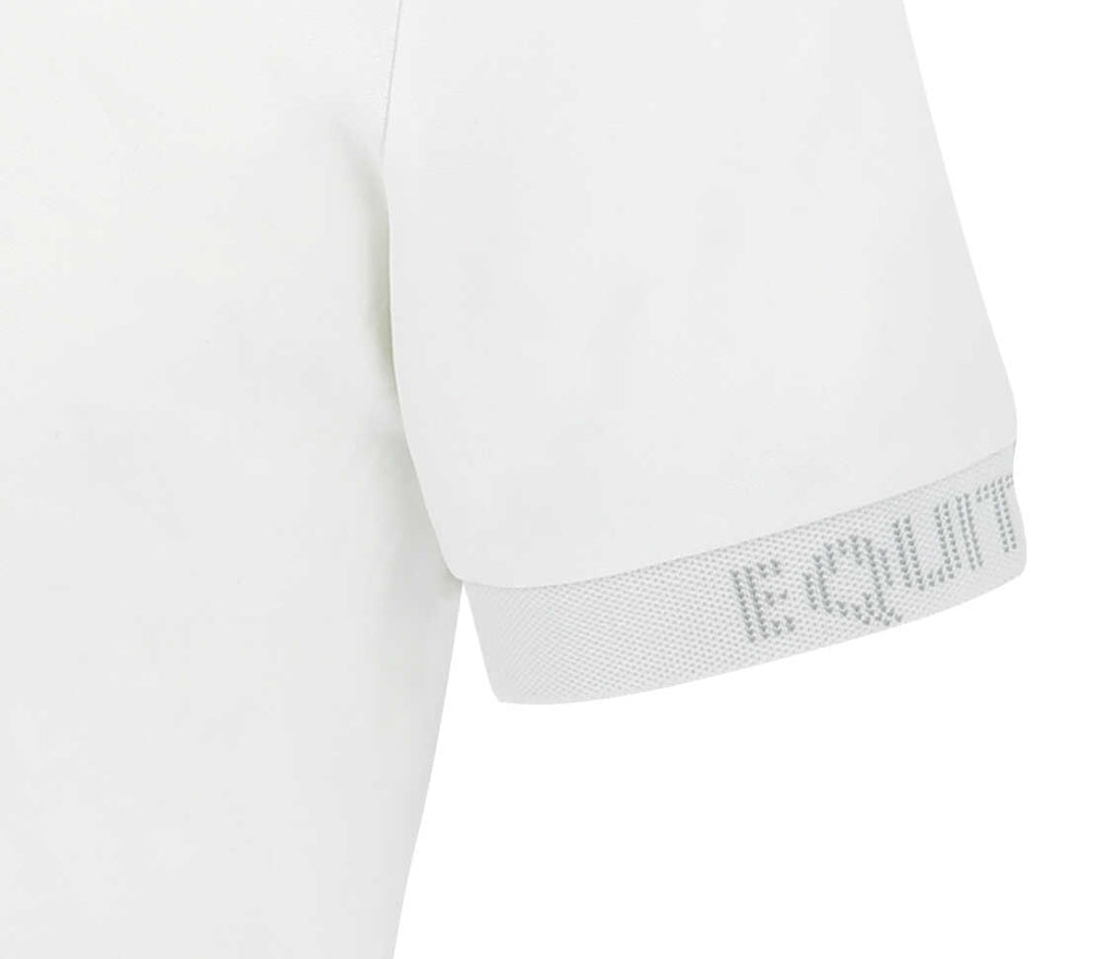 - White stand-up collar with tie loop.